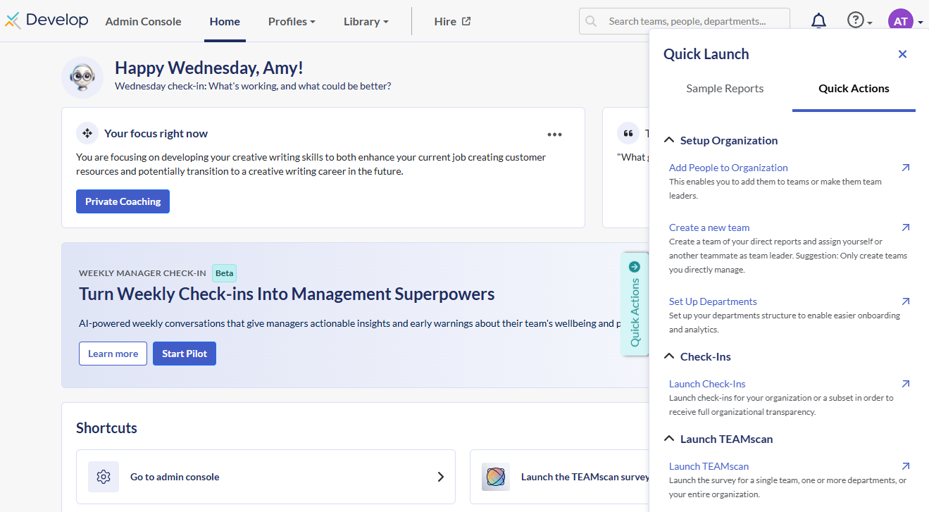 - Click Launch the TEAMscan survey in the Quick Actions tab.