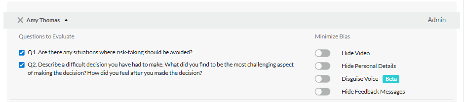 4. Hide Feedback Messages: hide any feedback messages candidates have added to their video responses