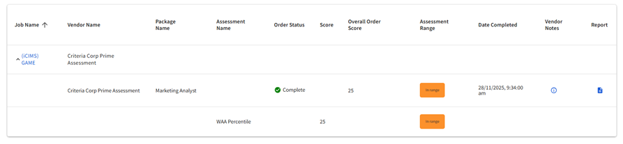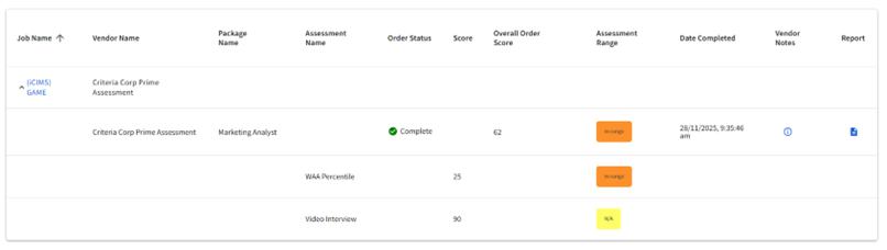 Once the candidate has completed the Criteria assessments, the results will be available in iCIMS Prime.
