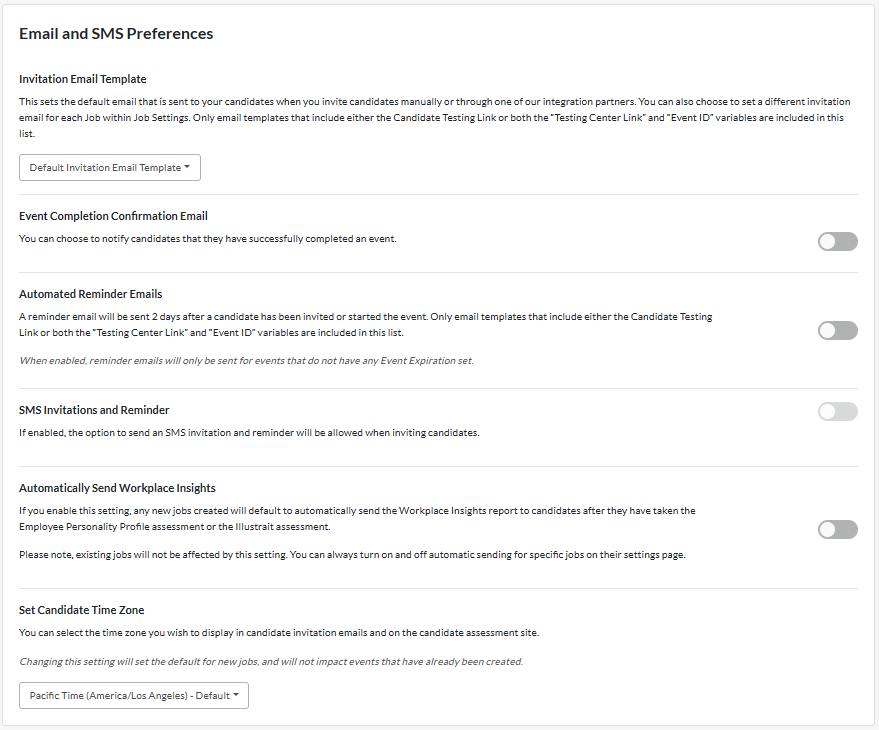 You can override your account’s default setting at the job level and when sending out invitations to individual candidates.