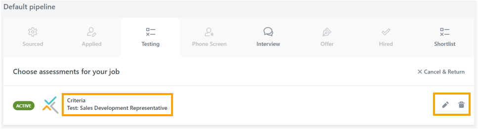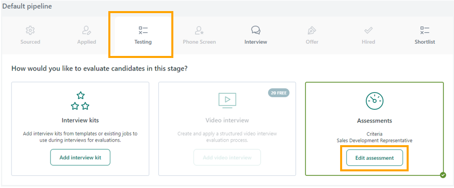 To check which test packages has been configured on a Workable job, return to the relevant pipeline stage, and choose Edit assessment.