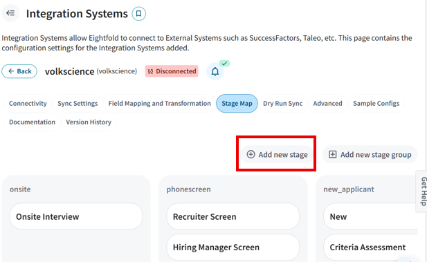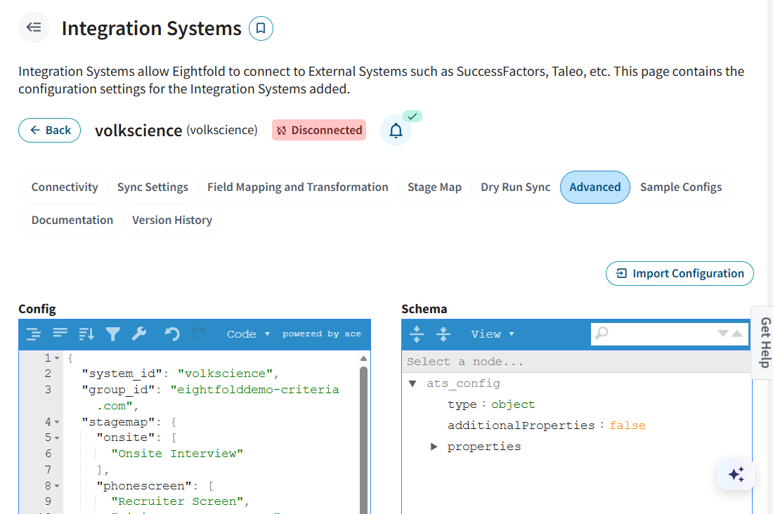 Now that you have the stage/s in Eightfold, you need to update the advanced settings in Eightfold to allow these stage/s to be used with the Criteria integration.