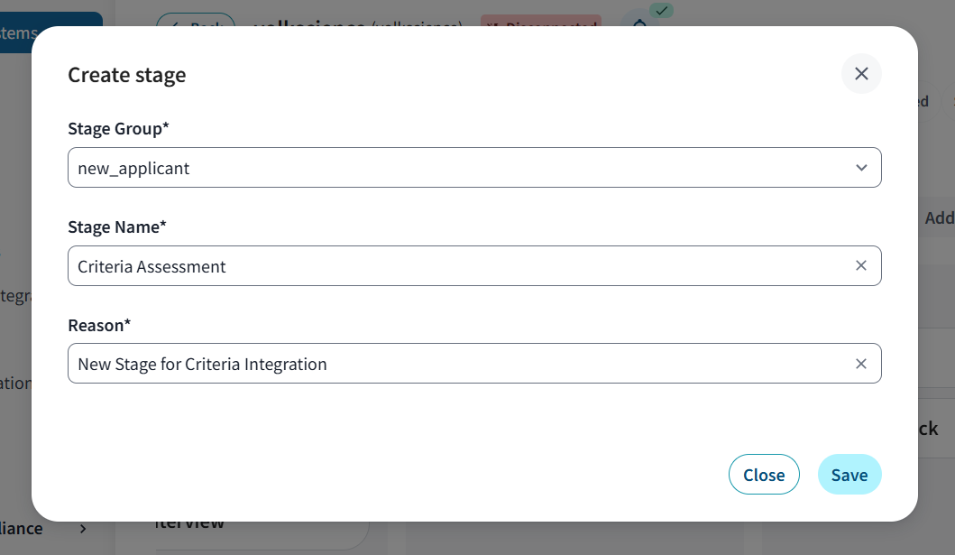 - Update the Advanced Settings to allow the new stage to be used in your Criteria Integration