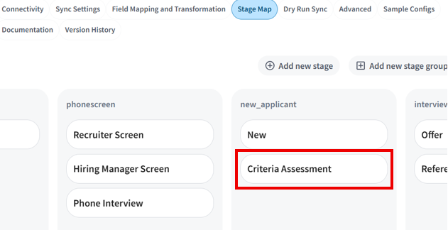 Criteria Testing is triggered when an applicant is moved into a particular stage in Eightfold. You will need to create a new stage for this purpose.