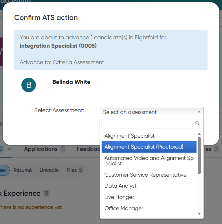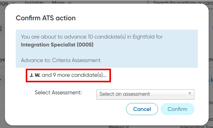 - Click the Confirm button to apply the change and Eightfold will immediately notify Criteria to invite the applicant