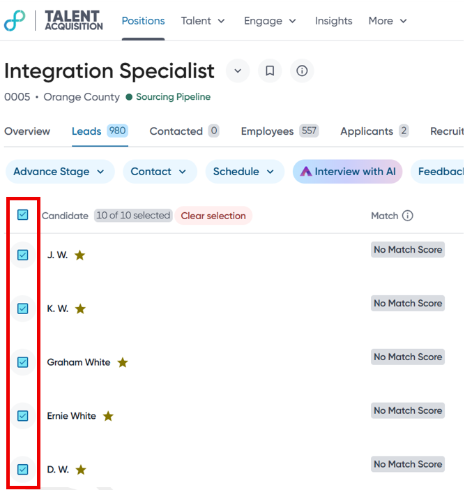 - In your Eightfold position, tick the box in front of all the applicants you wish to invite.