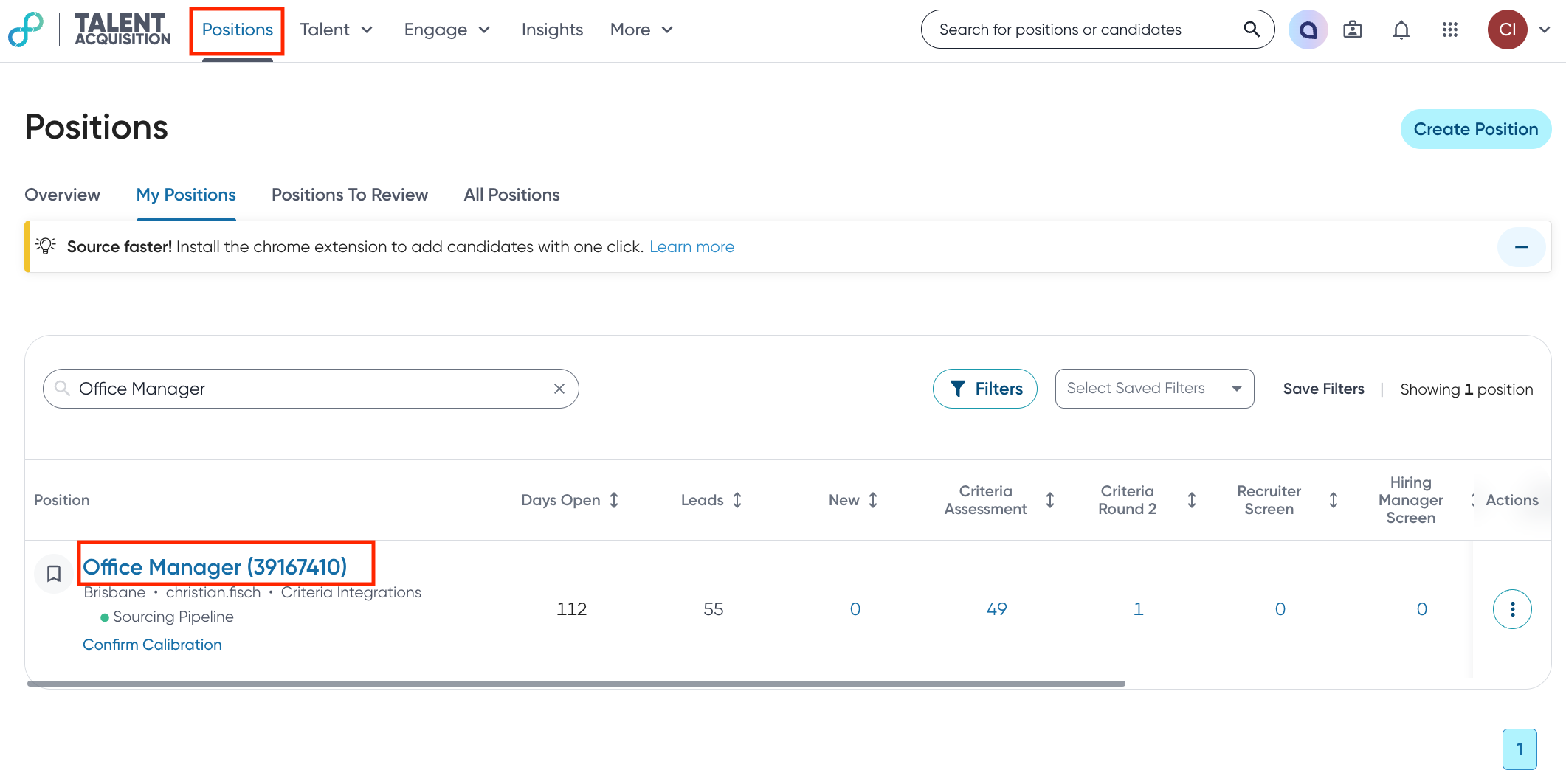 - Click Positions in the top menu bar. Then select the position where your candidate applied.